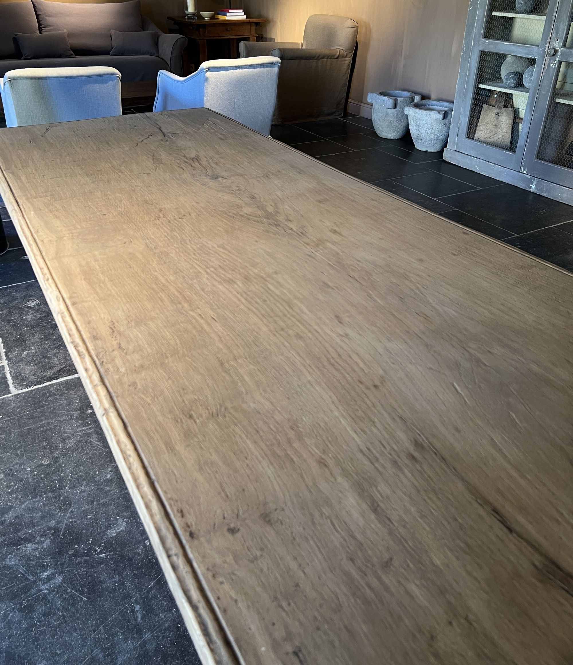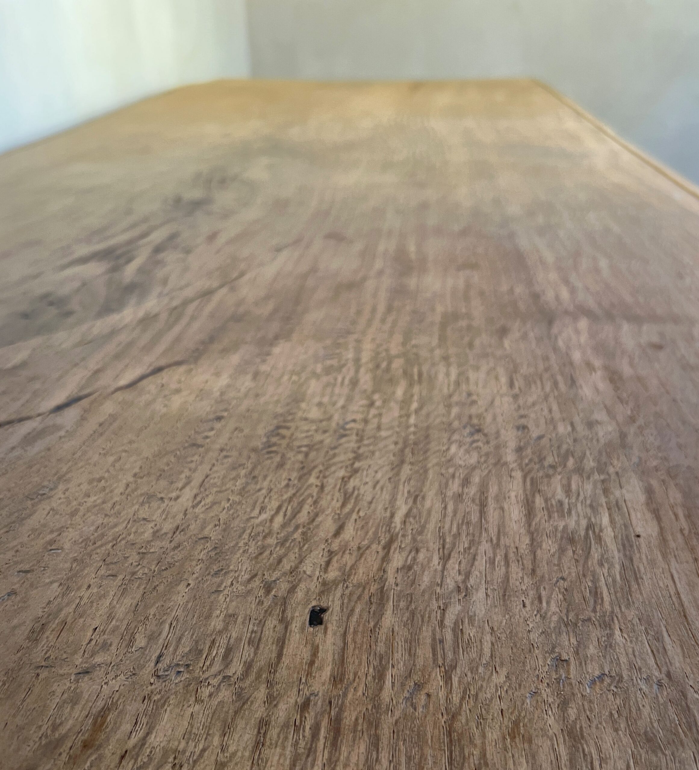 A great oak early 19th century farmhouse table. Simple and honest with a rare one slab top. One corner slightly warped but straight overall. Nice proportions and practical dimensions. Very sturdy and ready for everyday use. 230 x 85 x 76 Ref. 6000