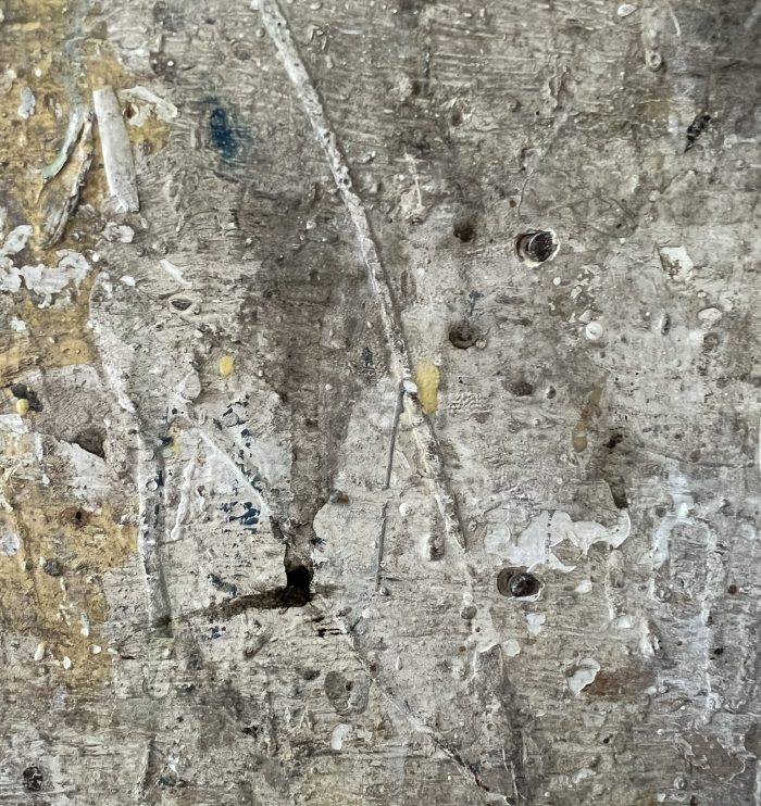 This 19th century painters box has centuries of patina. Layers and layers of paintresidues, scratches and handling has transformed this utilitary item to a intriguing object. Its structure and colors are like unintentional abstract artworks. One might only guess who the artist was that used it. 27 x 45 x 24 h, 750