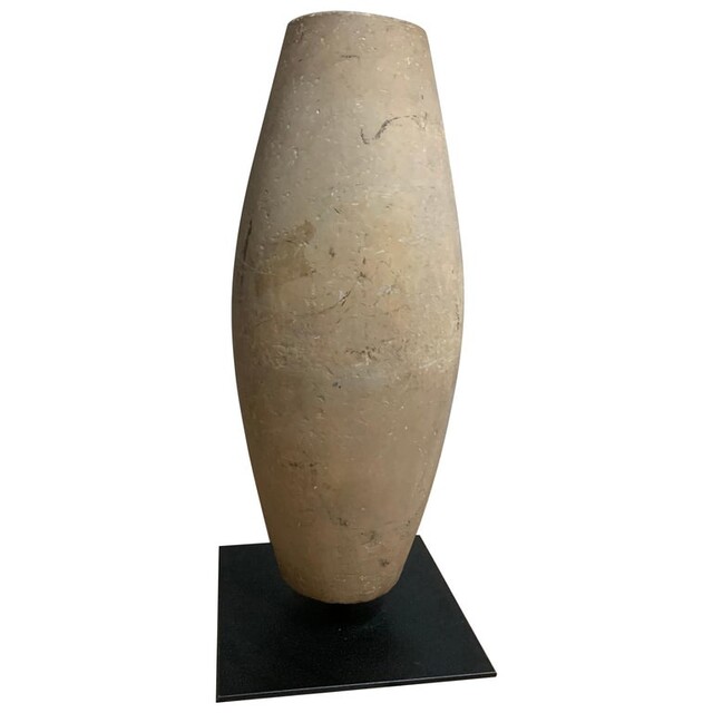 A Bactrian biconvex stone idol. Alongside column and staff idols these intriguing objects belong to the Bactria-Margana culture. An ancient civilization dating between the 3th and 4th millennium BC and occupying a large area between India and Afghanistan. It is believed objects like this were of spiritual importance referring to nature and fertility. This fascinating example is quite unusual in its shape and reminiscent to modernist sculpture (or the other way around). It has 2 custom stands, one for vertical and one for horizontal display.