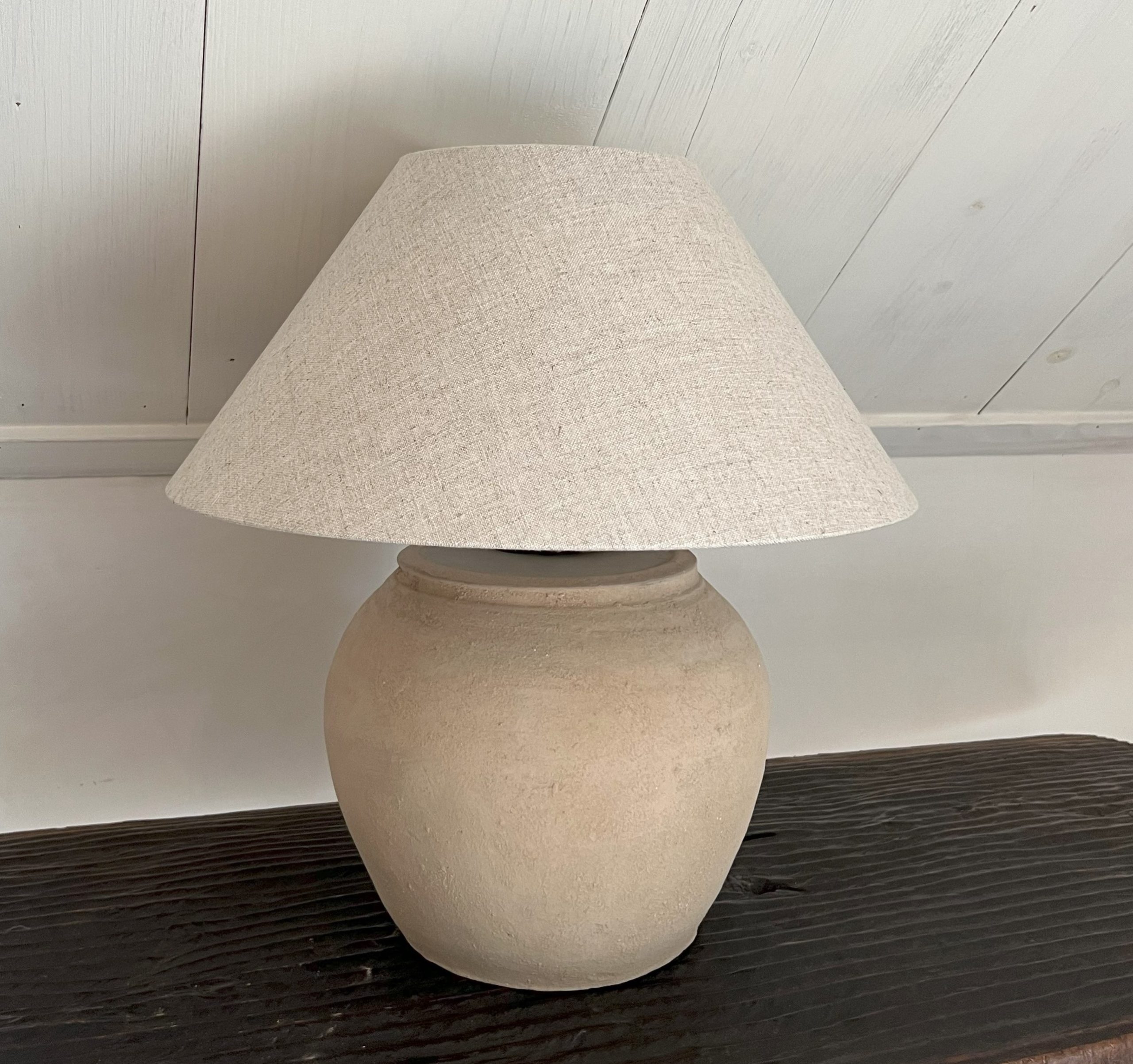 A Chinese Han style vase turned in to a tablelamp. Made from unglazed grey earthenware in a pot shape with subtle sandgrain patina. This vase has a great untouched patina with no cracks or restaurations. 50 h x 57 diam 1200