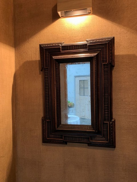 A 19th century ebonized Italian mirror in classical 17th century style. Made from softwood, finely moulded and decorated. Original mirror, soft patina.