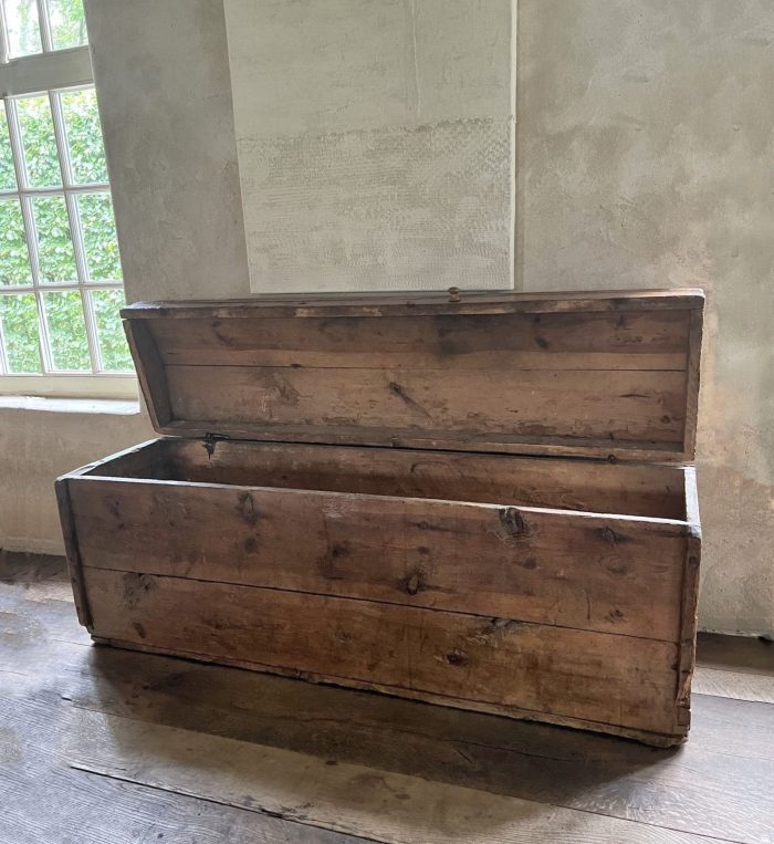 A wonderfully grained 19th century pine chest trunk. Great proportions and lovely color. 45 d x 165 w x 66 h, Ref. 2001