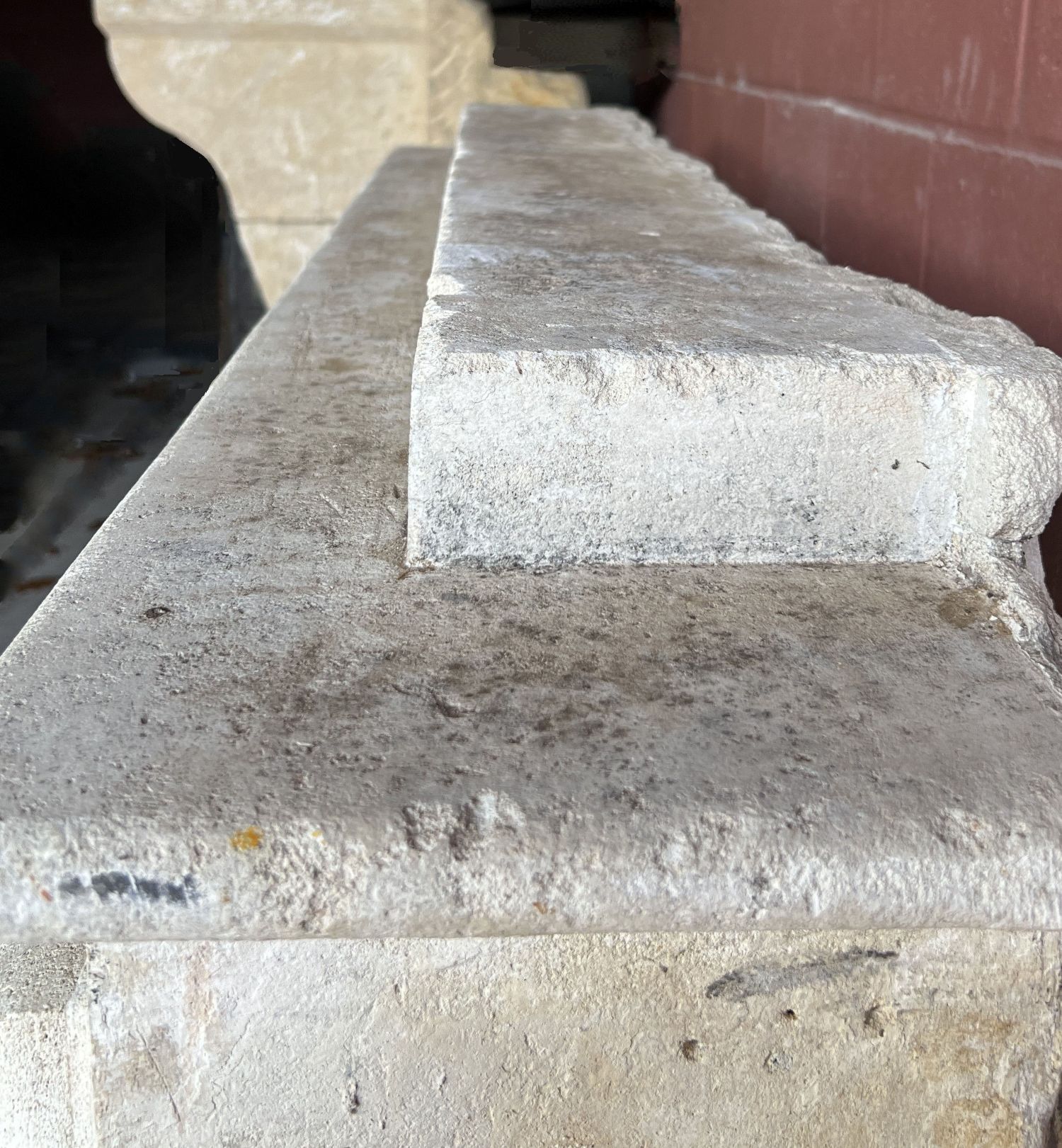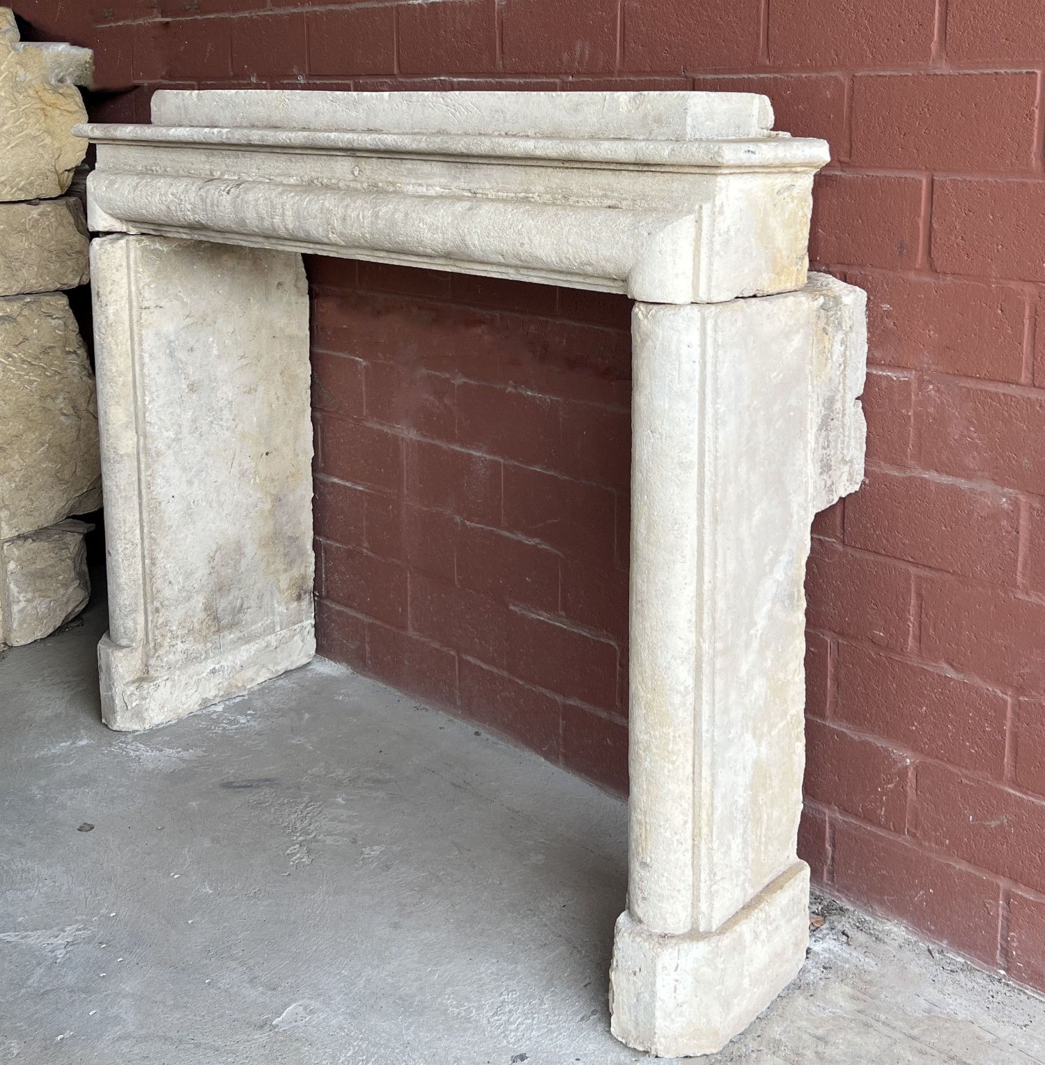 A rare French mantelpiece dating from the end of the 17th century. Made in a purified Louis XIII style with perfect proportions. This type of design originated from wainscott pannels and doorframes. Their mouldings were adapted to frame the open fireplaces. This way the wooden panneling could run trough a complete room. Soon also stone was used and later on also in marble. After a short period the more ornate Louis XIV style took over. In a modern context these mantels work perfectly on their own because of it's timeless appearance.