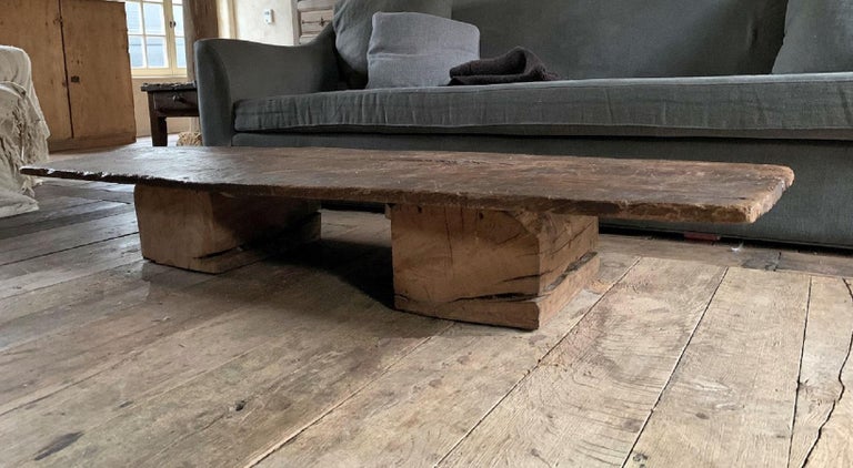 SOLD A custom coffee table made by our workshop from a 17th century one plank chestnut top and 18th century oak beams. Model BEAM 190X57X28H Pricecode 2057
