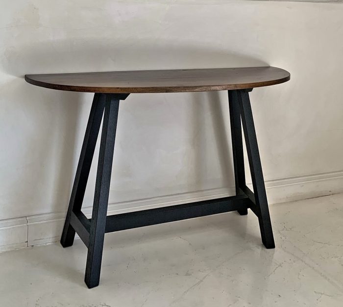 Our ZAR table is inspired by the proportions and spirit of antique demi lunes. By reducing their design to the essence and using 18th and 19th century wood each table is a unique conteporary piece. Patinas are left as they are and complemented by the grain and texture of the bases. Dimensions 118 x 47 x 72 Ref. 2507